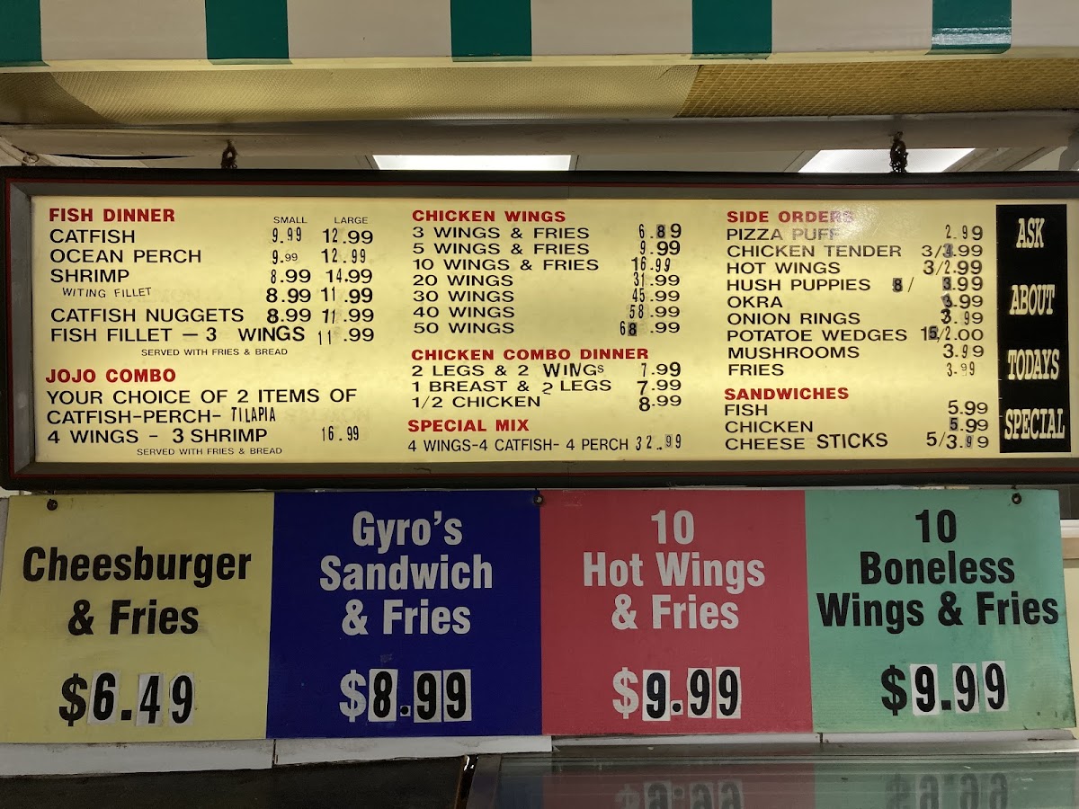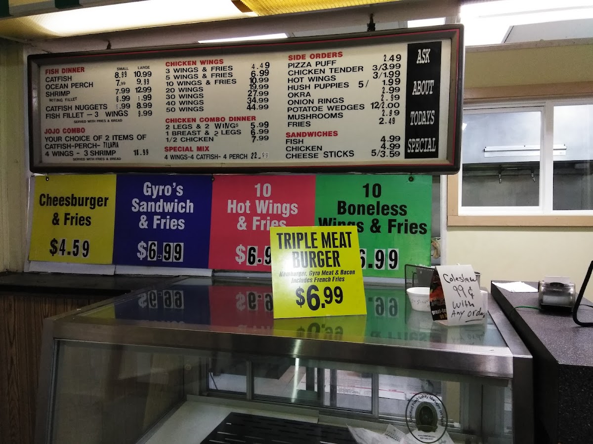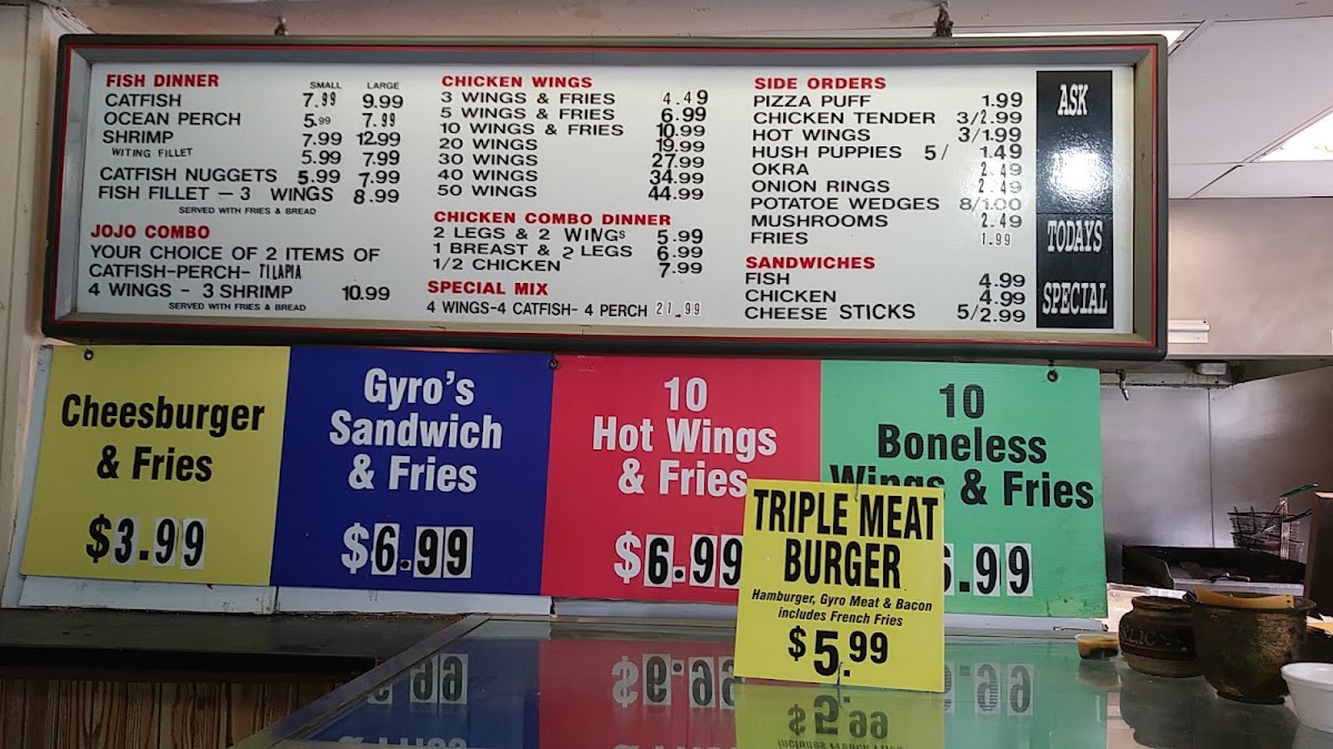 Jojo's Boulevard offers a diverse and flavorful menu that caters to a variety of tastes, with options that are sure to satisfy both seafood lovers and those craving hearty comfort food. The Fish Dinner section features popular items like Catfish, Ocean Perch, and Shrimp Catfish Nuggets. For those who prefer side orders, the menu includes delicious choices such as Chicken Tender, Fries, Hot Wings, Hush Puppies, and Okra.